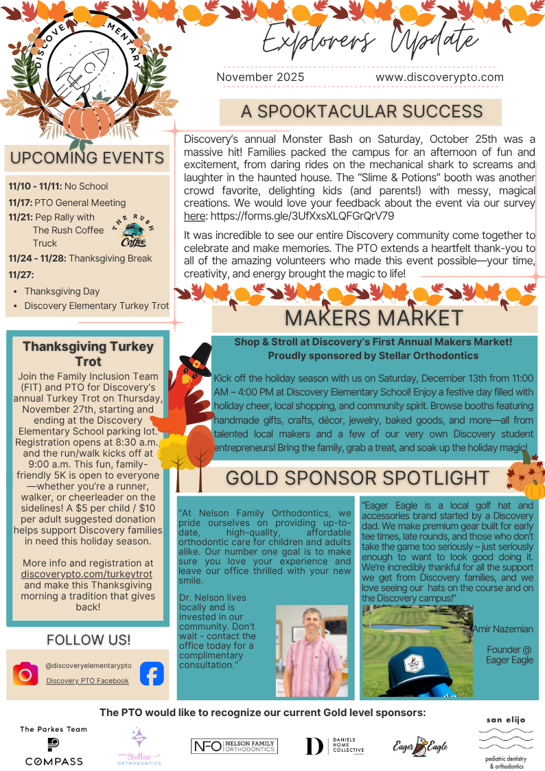 PTO November NewsletterPosted November 4, 2025/in News, Newsletter /by Nicole CollinsPlease enjoy the November issue of our PTO Newsletter!November 2025 Newsletter – EnglishNovember 2025 Newsletter – Spanish https://www.discoverypto.com/wp-content/uploads/2016/05/discovery-pto-logo__.png 0 0 Nicole Collins https://www.discoverypto.com/wp-content/uploads/2016/05/discovery-pto-logo__.png Nicole Collins2025-11-04 17:33:212025-11-04 17:33:21PTO November Newsletter