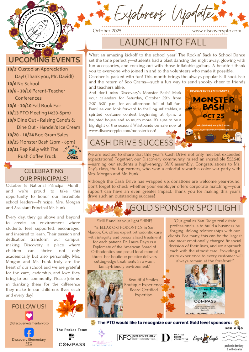 On behalf of the Discovery Elementary School Parent-Teacher Organization (PTO), welcome to the 2025–2026 school year! Whether you’re a returning family or joining us for the first time, we’re so glad you’re here and part of this amazing school community.